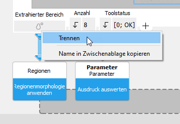 - Klicken Sie mit der rechten Maustaste auf die Verbindungsstelle und wählen Sie „Trennen“ aus. Dies funktioniert für Toolparameter und Toolergebnisse.