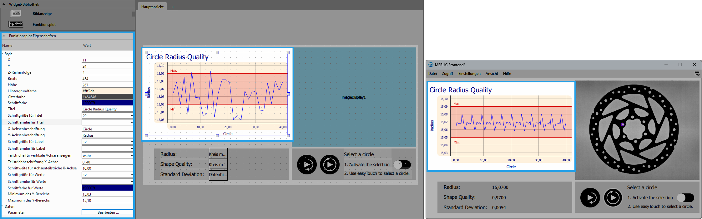 Starten Sie das Frontend und führen Sie die MERLIC-Vision-App ständig aus. Die Kreisradien werden kontinuierlich geplottet, während die Anwendung ausgeführt wird.