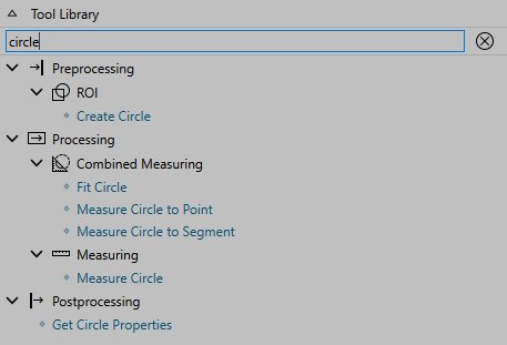 The Tool Library contains all available MERLIC tools A MERLIC tool is a modular unit with a specific functionality. It can be used to solve a specific task of an image processing application, to define conditions and expressions, or to communicate via various devices. Tools build the elementary part of a MERLIC Vision App. that can be used to create a MERLIC Vision App A MERLIC Vision App represents an image processing application created in MERLIC. It consists of the tools in the MERLIC Creator, the Designer widgets, and all settings that are used in the application..