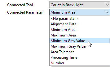 - Select the tool parameter or result whose values you want to transfer from the drop-down list of the property "Connected Parameter". The list contains all tool parameters and results of the tool that has been selected in the property "Connected Tool".