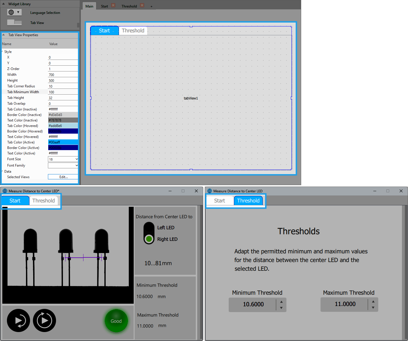To get a detailed description how to configure the "Tab View" widget for this kind of user interface, please refer to the chapter Creating a User Interface with Tabbed Views.