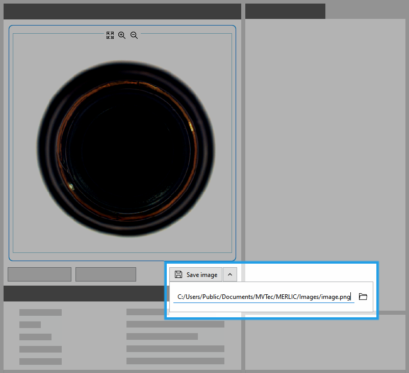 You can use the image preview to acquire images from your camera device and to check the current parameter settings of the camera. You can configure the camera in real time, zoom in and out of the image to facilitate the configuration of the settings, for example, the camera focus, and also save the currently displayed image.
