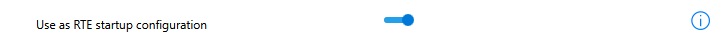 - Activate the toggle for "Use as RTE startup configuration". The RTE startup configuration will be marked with a flag icon.