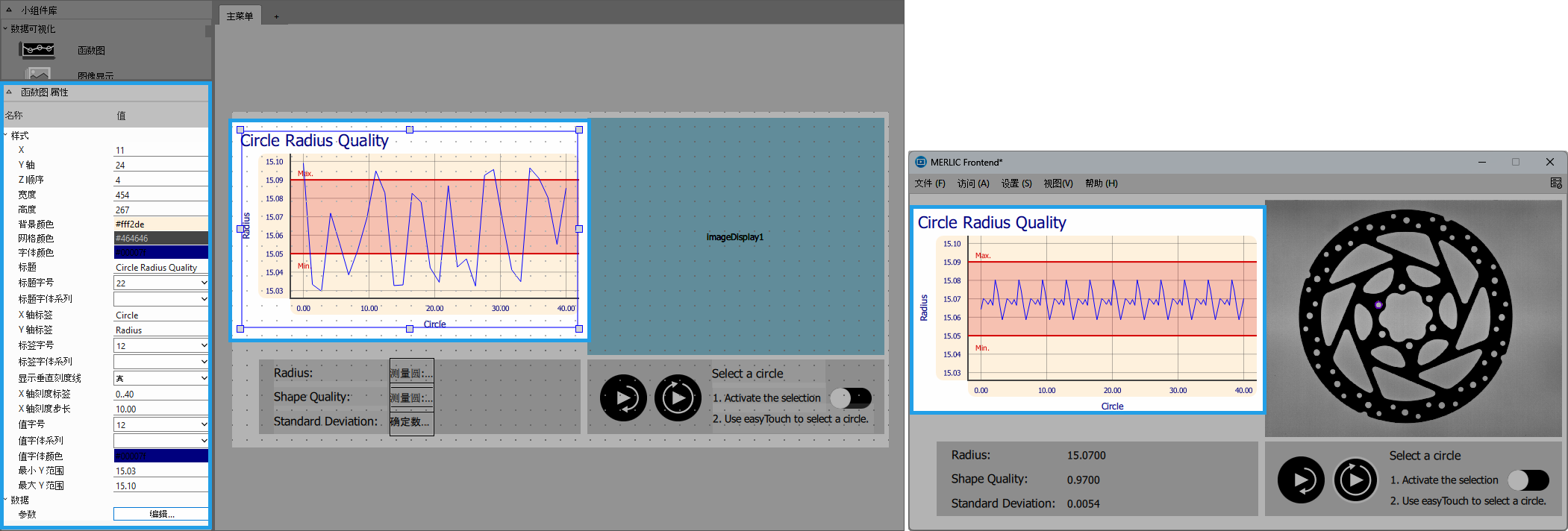 启动 Frontend 并连续执行 MERLIC Vision App。运行应用程序时,圆形半径会连续绘制。