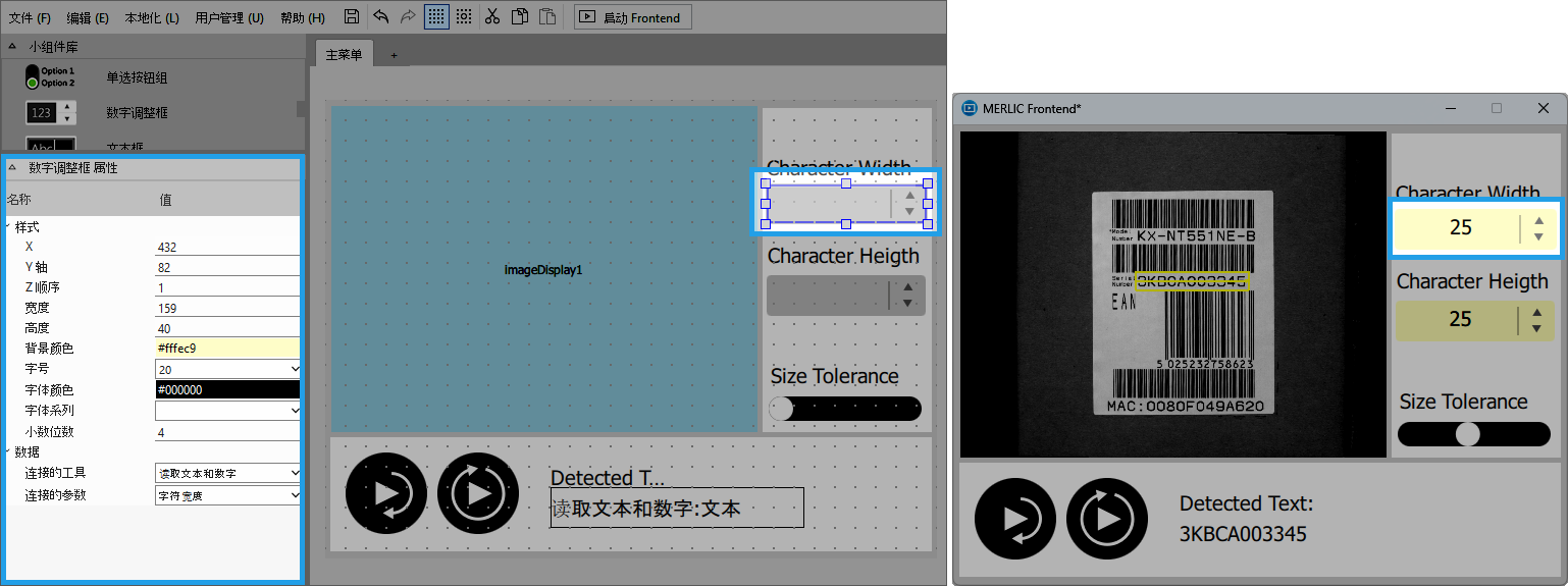 此小组件可以在 Frontend 中用作数字调整框,用于调整已连接参数的值。您可以将该小组件与具有整数值的参数建立连接。与 滑动条小组件不同,数字调整框可以让您将参数值精确设置为一个特定值。在需要将参数值设置为精确值时,此小组件非常有用。如果可供选择的值非常少,您还可以使用 单选按钮组小组件。