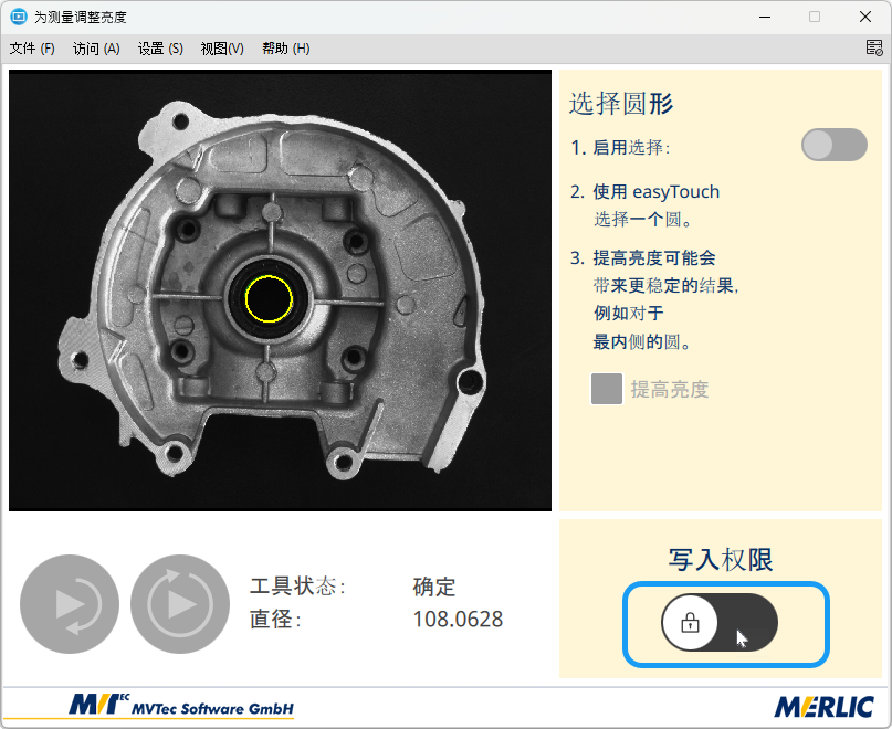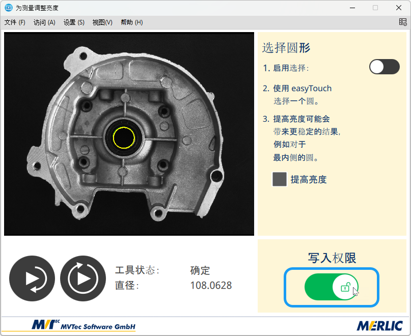 如果您在写入权限模式处于激活状态时关闭 MERLIC Frontend 窗口,写入权限会自动释放。