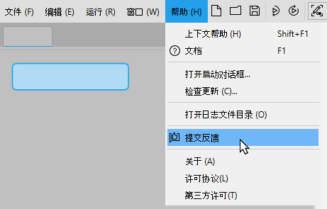 - 打开 MERLIC Creator 并单击菜单栏中的菜单项“帮助”。您可以在其中找到菜单项“提交反馈”: