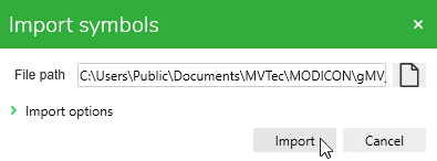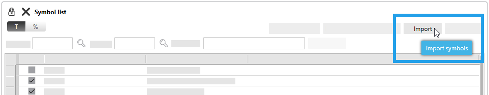 - In the "Symbol list" window, click the "Import" button to open the dialog for the import.