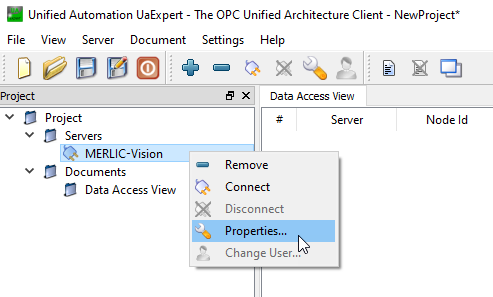要测试提供的 OPC UA server 插件,必须将服务器添加到 OPC UA 客户端。在我们的文档中,我们将使用 UaExpert® 客户端。它是一个功能齐全的 OPC UA 客户端,可用于测试目的,并可从 Unified Automation 网站下载。但是,您可以使用自己选择的任何 OPC UA 客户端。