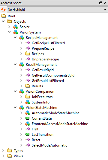 “VisionCompanion”对象不会取代配套规范中定义的对象、方法和变量,它们仍然可用并且可以正常使用。有关如何使用“VisionCompanion”对象操作 OPC UA server的更多信息,请参阅可选加载项“VisionCompanion”主题。