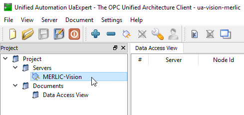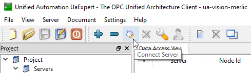 在下面的描述中,我们将演示如何从 UaExpert® 连接到服务器。请记住,即使连接到服务器,任何方法调用都将导致错误,直到 MERLIC 在后台以流程集成模式运行为止。