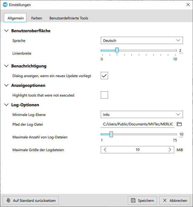 MERLIC umfasst einen Protokollierungsmechanismus, der automatisch Protokollmeldungen in die entsprechenden Log-Dateien im Standardverzeichnis %LOCALAPPDATA%\MVTec\MERLIC\ schreibt. Auf die Log-Dateien können Sie im MERLIC Creator über den Menüeintrag „Hilfe → Log-Dateiverzeichnis öffnen„ zugreifen.