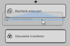 Ziehen Sie das Tool aus der Tool-Bibliothek in das Tool-Flow-Panel und legen Sie es an der gewünschten Position ab. Beim Ziehen des Tools zeigt ein Rechteck in gestrichelten Linien die Position an, an der das Tool beim Ablegen platziert wird.