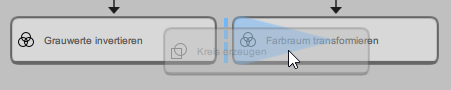 Sobald das Tool hinzugefügt wurde, wird es automatisch im Tool-Flow-Panel ausgewählt und sofort im Tool-Arbeitsbereich angezeigt. Verbindungsstellen eines neu hinzugefügten Tools für Bilddaten ermitteln automatisch geeignete Verbindungen zu vorherigen Tools. Die Verbindungen können aber auch manuell geändert werden. Beim Löschen eines Tools werden alle Verbindungen zum und vom gelöschten Tool automatisch entfernt. Eine leere Zeile oder Spalte wird nach dem Löschen eines Tools automatisch entfernt.