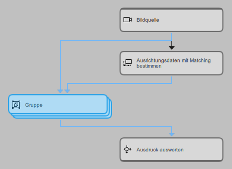 Für einen Parameter einer Gruppe werden immer der Name des jeweiligen Tools sowie der Name des Parameters angezeigt, z. B. „Mit Matching zählen.Bild“. So können Sie leicht erkennen, welchem Tool ein Parameter zugewiesen ist. Wenn viele Parameter an der Gruppe vorhanden sind, sodass deren Namen nicht vollständig sichtbar sind, können Sie den Mauszeiger über einen Parameternamen bewegen, um den vollständigen Namen im Tooltip anzuzeigen.