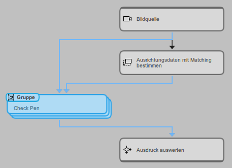 MERLIC bietet die Möglichkeit, mehrere Tools Ihrer MERLIC-Vision-App (MVApp) in einer Gruppe zusammenzufassen. Beim Konfigurieren Ihrer MVApp kann es wünschenswert sein, Tools, die ähnliche Verarbeitungsaufgaben durchführen, zu einer Gruppe zusammenzufassen oder die MVApp mithilfe von Gruppen übersichtlicher zu gestalten. Sie können die Tools, die Sie gruppieren möchten, einfach auswählen und eine Gruppe erstellen. Nachstehend finden Sie Informationen zum Gruppieren mehrerer Tools und zum Aufheben der Gruppierung sowie Informationen zu den verschiedenen Konfigurationen, die Sie für eine Gruppe durchführen können. Die Verwendung von Gruppen in Ihrer MVApp kann sich auch auf das Frontend-Design der MVApp auswirken. Weitere Informationen zu den Aspekten, die beim Erstellen eines Frontend-Designs für eine MVApp mit Gruppen berücksichtigt werden sollten, finden Sie unter Widgets anpassen.