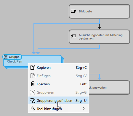- Klicken Sie im Tool-Flow-Panel mit der rechten Maustaste auf die Gruppe und wählen Sie im Kontextmenü „