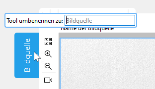 Sie können jedes Tool umbenennen, indem Sie auf den Toolnamen im blauen Feld doppelklicken und einfach den neuen Namen eingeben. Damit das Tool nach der Umbenennung leicht erkennbar bleibt, wird der ursprüngliche Name weiterhin zusätzlich zum neuen Namen angezeigt. Beide Namen werden im Toolboard und im Tool-Flow-Panel angezeigt. Wenn Sie eine Zahl eingeben, wird diese stattdessen hinter dem ursprünglichen Toolnamen hinzugefügt.