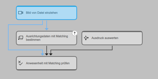 Darüber hinaus wird das jeweilige Tool im Tool-Flow-Panel mit dem Symbol gekennzeichnet, um darauf hinzuweisen, dass mindestens ein Ergebnis dieses Tools an die externe Quelle übertragen wird. Im folgenden Beispielbild zeigt der Tool-Flow, dass das Tool Ausrichtungsdaten mit Matching bestimmen Toolergebnisse aufweist, die als MVApp-Ergebnisse festgelegt sind. Weitere Informationen zu den Symbolen im Tool-Flow-Panel finden Sie unter Toolstatus.