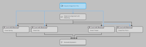 The acquired image of a single camera can be inspected by several tools at the same time. In the example graphic below, the acquired image is used in four parallel processes.