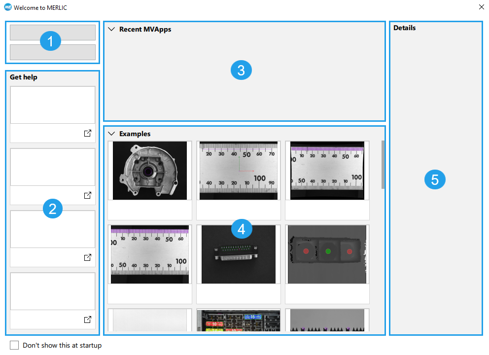 In this area of the start dialog, you can find up to ten MVApps that were most recently used. This includes both your own MVApps as well as the MVApp examples provided by MERLIC. If an MVApp has been deleted, it will no longer be visible in the start dialog. You can also access recently opened MVApps via the "File" menu of the MERLIC Creator.