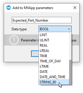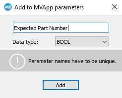 - Enter a unique name for the MVApp parameter into the new dialog.