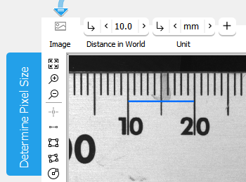 Determine the pixel size with a region of interest (ROI) to define a known length. The result can be used directly in the tools of the category Measuring or Position Determination. |