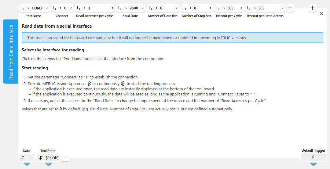 Please make sure that this parameter is not connected to the handle of a different Read from Serial Interface tool. This ensures that all data will be read in this tool.