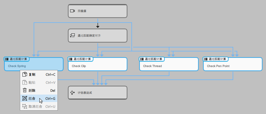 - 在工具流程面板中选择要组合在一个群组中的工具。