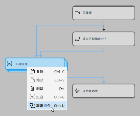 组合”。您也可以使用键盘快捷键 Ctrl+G。如果由于限制而无法对所选工具进行组合,则上下文菜单条目将显示为灰色,且键盘快捷键将不可用。