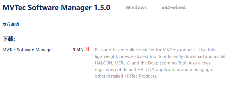 - 通过以下网址登录 MVTec 下载区下载 MVTec Software Manager:www.mvtec.com/downloads/software-manager。