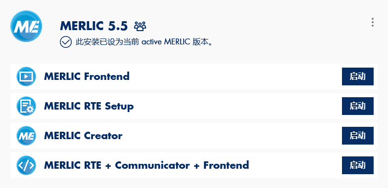 您也可以先通过 Windows 开始菜单打开所需的 MERLIC 版本,然后从 MERLIC Creator 中打开 MVApp。Windows 开始菜单提供所有已安装的 MERLIC 版本的条目。