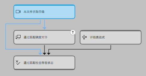 此外,在“工具流程”面板中,相应的工具也会用图标 标记,以指示此工具的至少一个结果已被设置为可传输到外部源。在下面的示例图像中,工具流程显示了工具通过匹配确定对齐具有被设置为 MVApp 结果的工具结果。请参阅工具状态主题,了解“工具流程”面板中图标的更多信息。