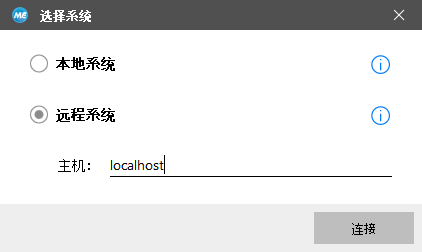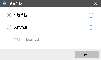 如果直接从 MERLIC Creator 启动 MERLIC RTE Setup,将建立到您的本地系统的连接。不过,您可以切换到远程系统。请参阅切换到不同的系统部分了解更多信息。