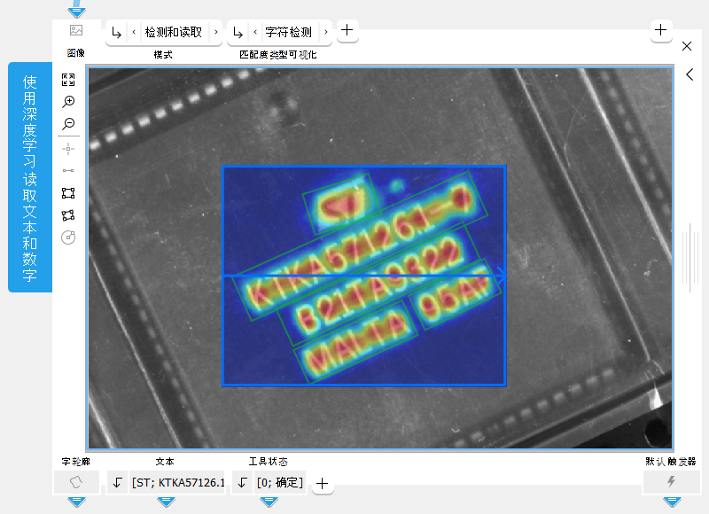 下图显示处于“读取”模式的此工具,要读取的字周围具有所需的 ROI。