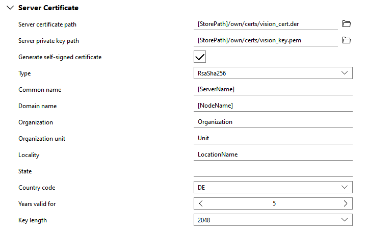 如果不设置此参数,则参数“Server certificate path”和“Server private key path”必须指向有效文件。
