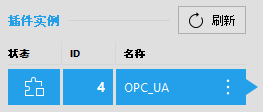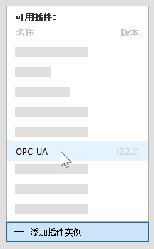 3. 确保插件当前未在运行。否则,参数将不可用于配置。可以通过插件实例列表中的相应状态图标查看插件的当前状态。如果状态显示 图标,表示插件正在运行。在这种情况下,必须通过单击 MERLIC RTE Setup 底部的“ 停止插件”按钮停止它。如果状态显示 图标,表示插件当前未在运行。在以下示例图像中,OPC UA server 插件的选定实例当前未在运行,因此可以进行配置。