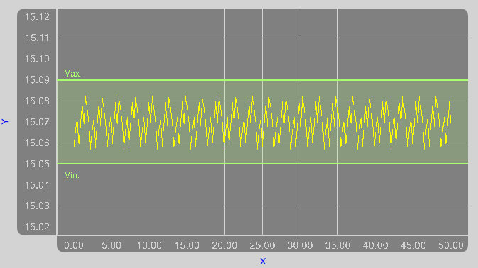 - Adjust the "Minimum Y-Range" to "15.02" and the "Maximum Y-Range" to "15.12".
