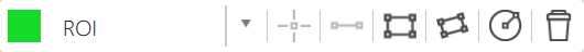 The following properties define the style and position of the ROI toolbar. The toolbar is not displayed by default. It is only displayed if at least one ROI has been selected in the "Display ROI" property and the corresponding "Edit" property has been set to "Move and Modify" or "Move, Modify, Add, Delete".