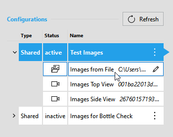 To enable the configuration options for an image source from file, that is, for an image file directory, you have to activate the image source configuration that contains the respective image source. Only then it is possible to acquire images from the selected source and to check them in the image preview. For more information about the activation, see the topic Activating the Configuration