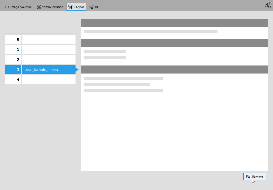 Remove" at the bottom right of the "Recipes" tab.