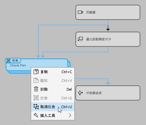 可以在 MERLIC Creator 的工具流程面板中组合和取消组合各种 MERLIC 工具,如以下部分所述。