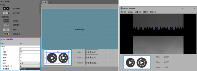 通过此小组件可以控制应用程序的执行,即启动和停止 MERLIC Vision App的执行。默认情况下,还会启用用于单个执行步骤的“运行一次”按钮。如果仅想提供应用程序的连续执行,可在“显示运行一次”属性中调整相关设置。