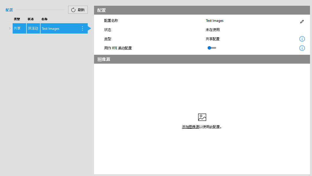 使用“刷新”按钮可将列表更新为每个配置和图像源的当前状态。