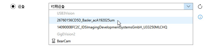 - 打开下拉菜单以显示可用设备列表。