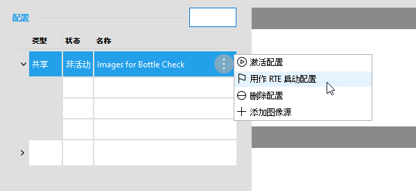 或者,您也可以通过单击 图标后打开的相应配置菜单选择 RTE 启动配置。