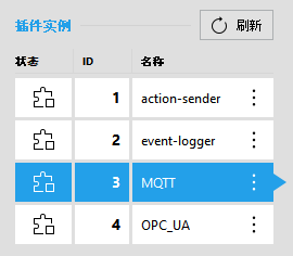 要启用插件实例的配置,首先必须确保想要配置的插件实例当前未在运行。否则,插件参数将不可配置。可以通过 MERLIC RTE Setup 左侧的相应状态按钮查看每个插件实例的当前状态。在以下示例图像中,如图标 所示,MQTT 插件的选定实例当前未在运行,因此,该 MQTT 实例可以进行配置。