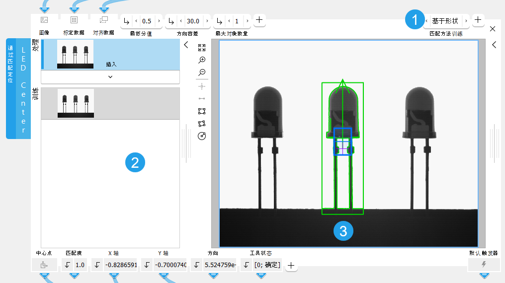 此工具在训练模式下使用。这就是说先根据指定的训练参数来训练待定位对象。只要设置了或更改了训练参数,训练就会自动开始。