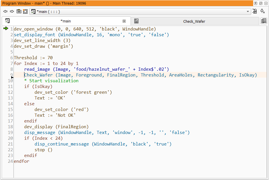 - Open the HDevelop program which contains the image processing task for the new custom tool.