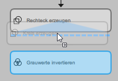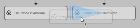Sobald das Tool hinzugefügt wurde, wird es automatisch im Tool-Flow-Panel ausgewählt und sofort im Tool-Arbeitsbereich angezeigt. Verbindungsstellen eines neu hinzugefügten Tools für Bilddaten ermitteln automatisch geeignete Verbindungen zu vorherigen Tools. Die Verbindungen können aber auch manuell geändert werden. Beim Löschen eines Tools werden alle Verbindungen zum und vom gelöschten Tool automatisch entfernt. Eine leere Zeile oder Spalte wird nach dem Löschen eines Tools automatisch entfernt.